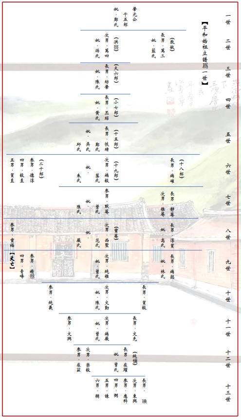 來台後遂入墾三塊厝,本著刻苦耐勞精神,五子三孫各自建立家業,距今近300年,現已傳逾25世,各派下建業如下: