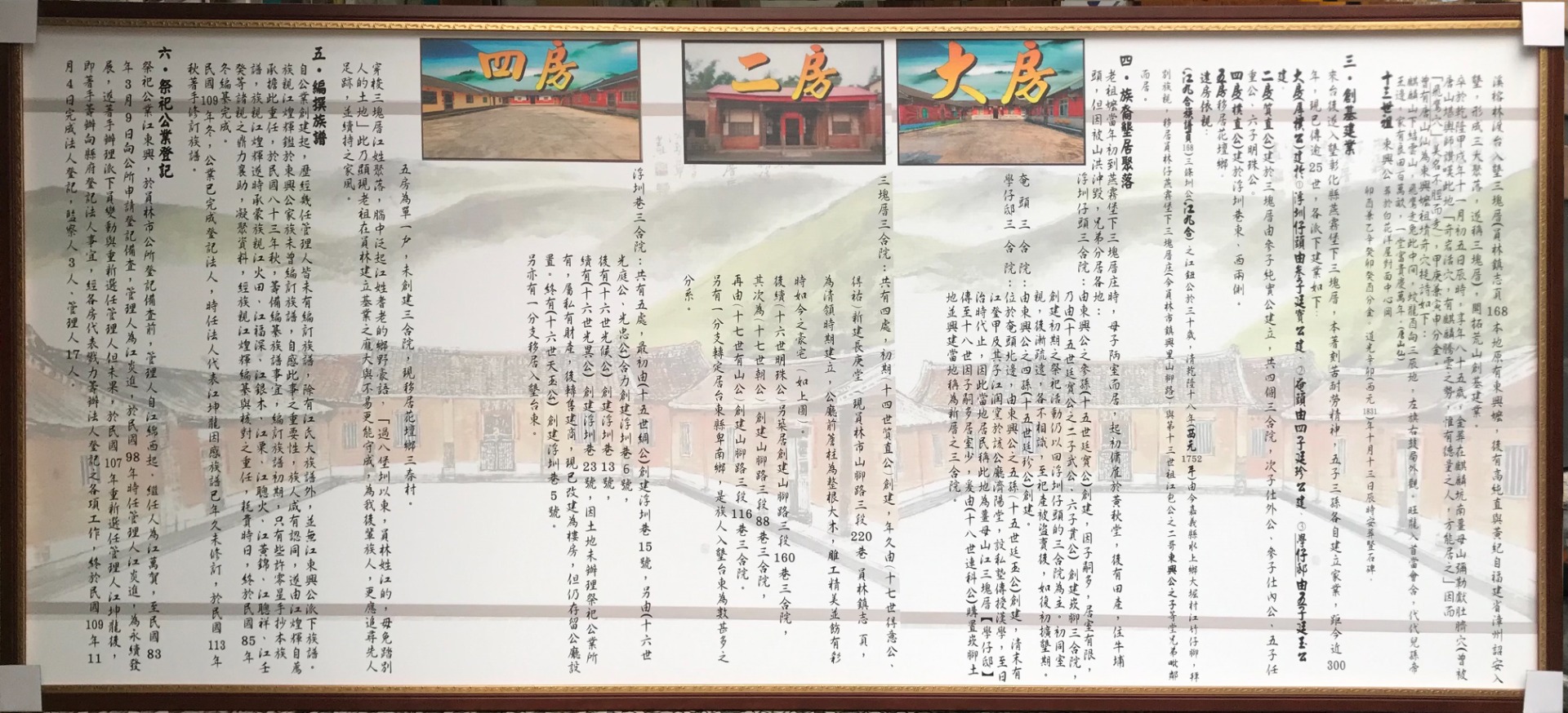 大房(厚樸公)建於浮圳仔頭由參子廷寶公建、2奄頭由四子廷珍公建、3學仔邸由五子廷玉公建。