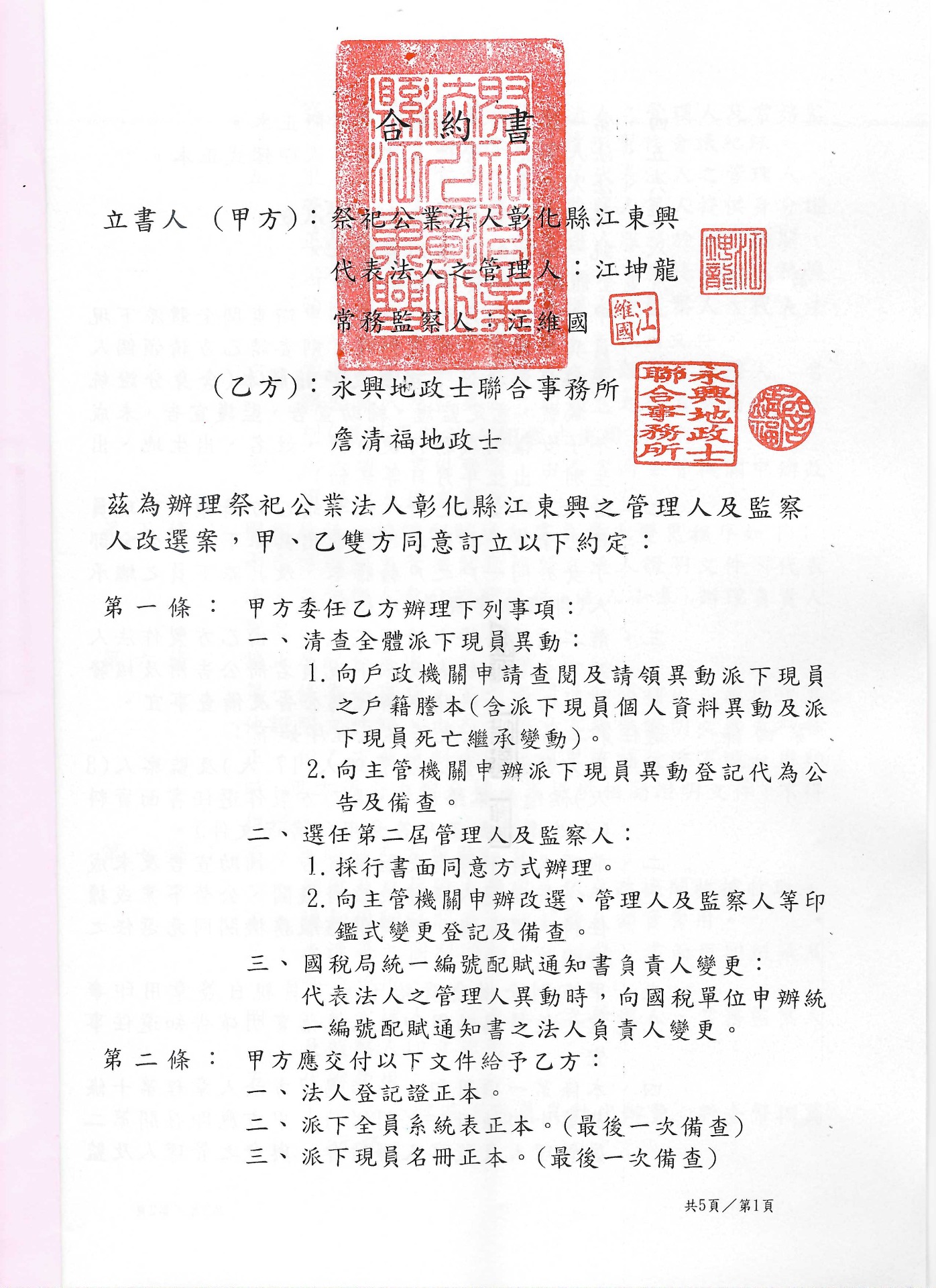 祭祀公業委託永興代書辦理第二屆管理人和監察人選任與派下員清查。